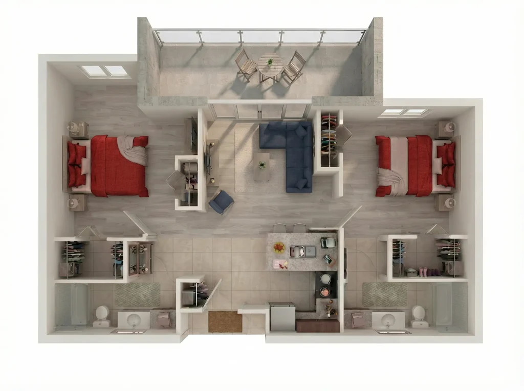 Comfortably designed residences with open layouts, natural light, and easy access to beautiful gardens.